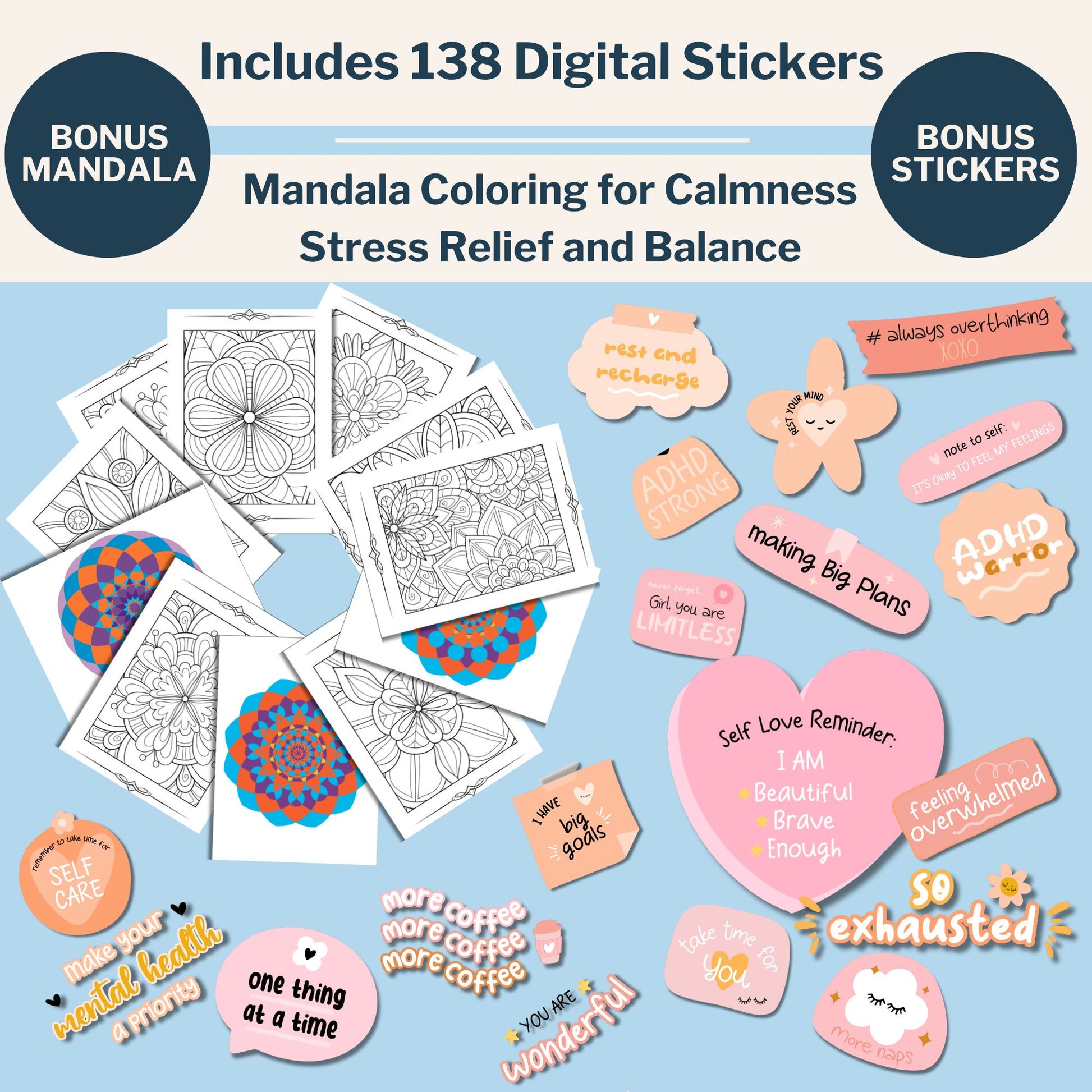 BONUS Gifts Included! Every purchase comes with the ADHD Colouring Book for calming, creative breaks and 138 digital stickers to decorate the planner or print, cut, and paste onto paper pages.