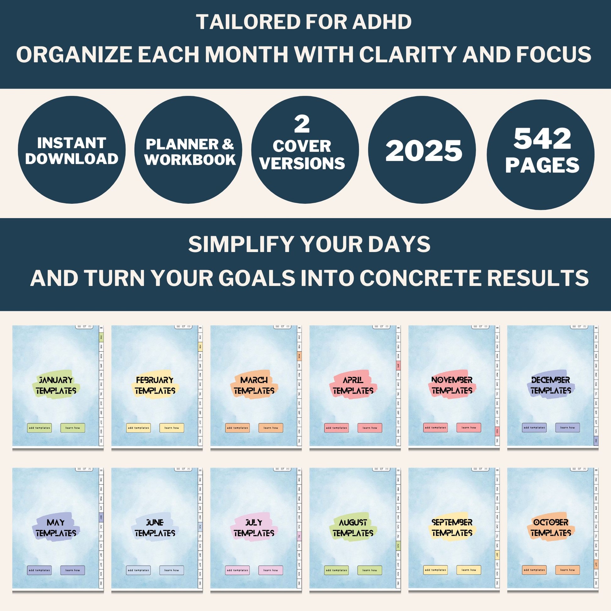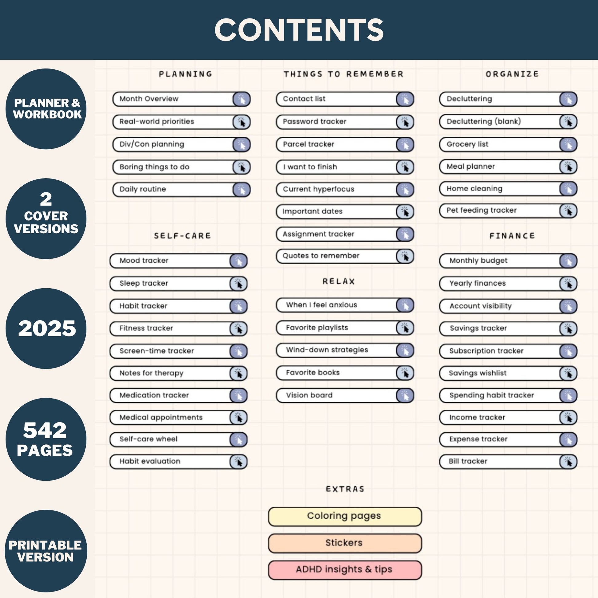 The ADHD SELF-HELP TOOLKIT gives you a complete set of planners, workbooks, and guides, all carefully designed for ADHD minds.